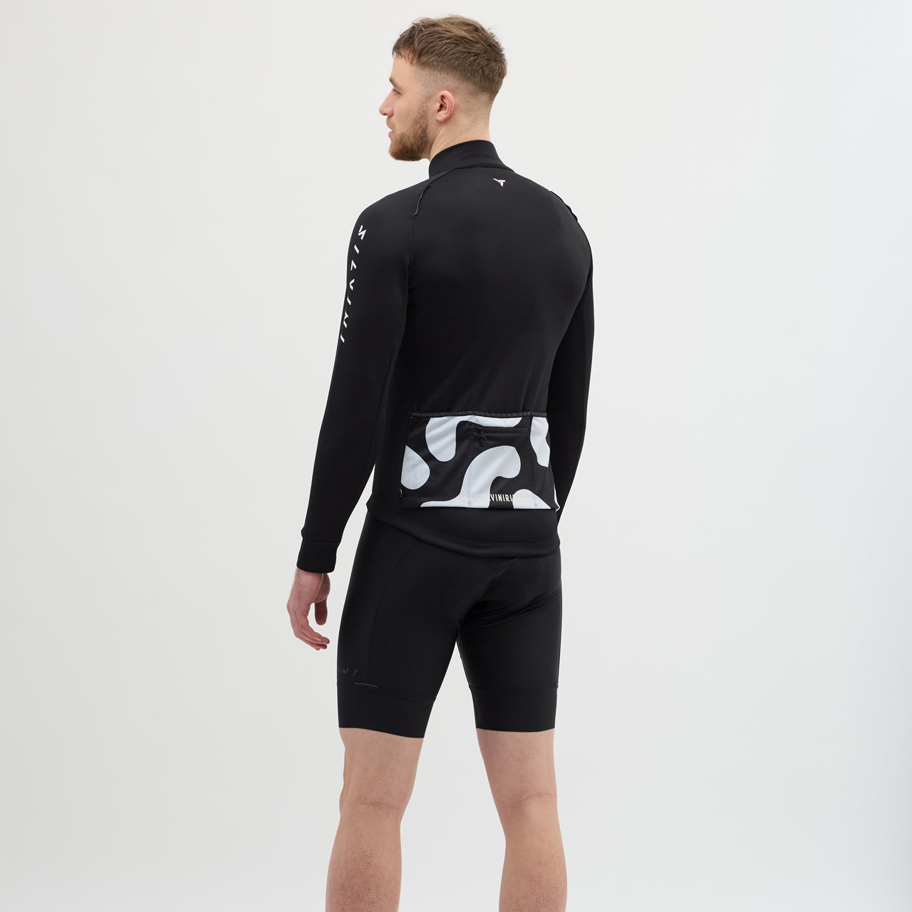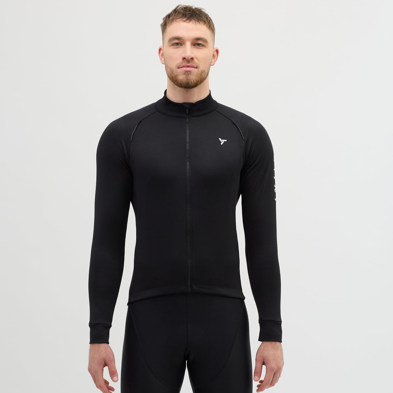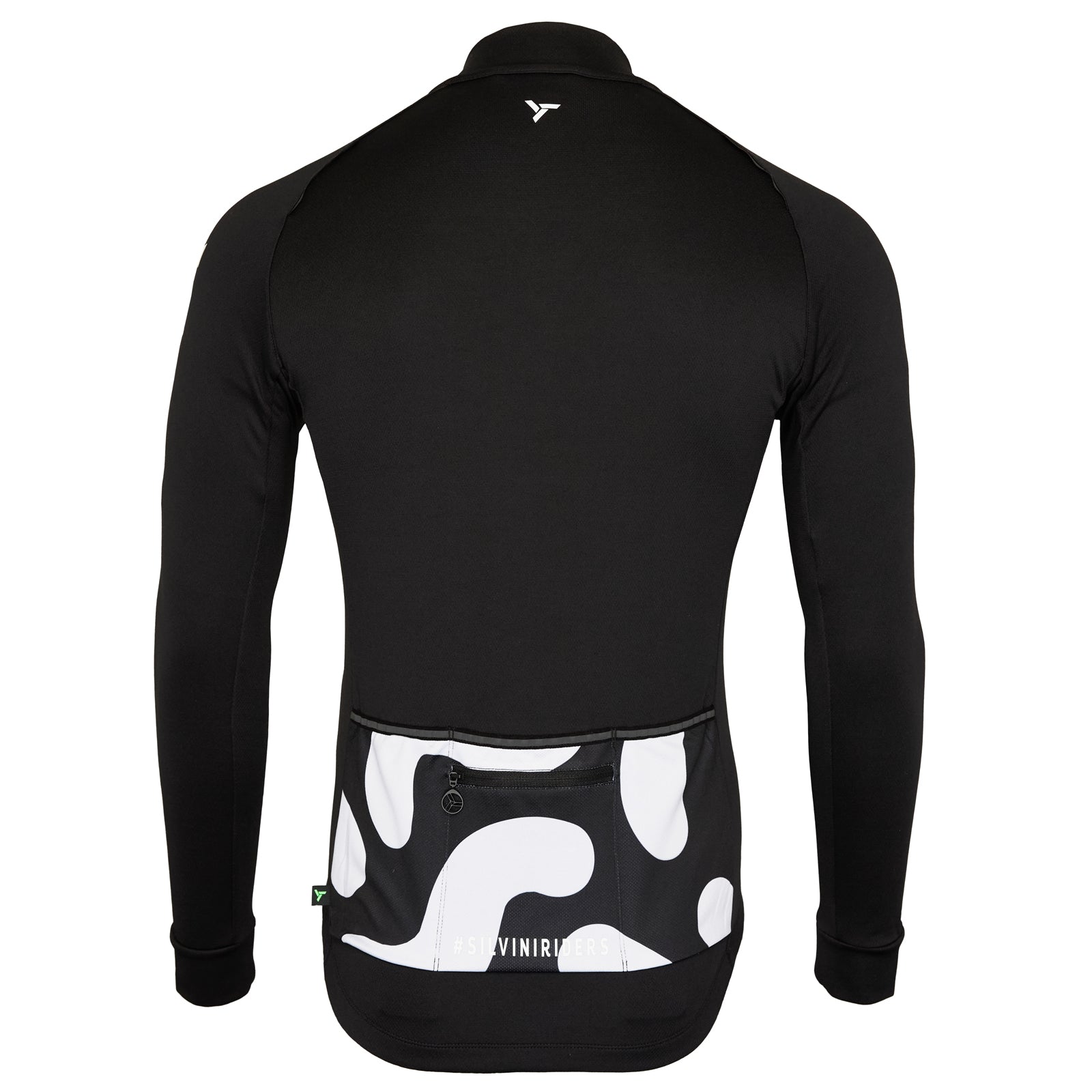 Men's insulated long-sleeved cycling jersey, made of densely woven POWERtherm material, is windproof. The raised collar effectively protects the neck. There is also a practical three-pocket at the back.