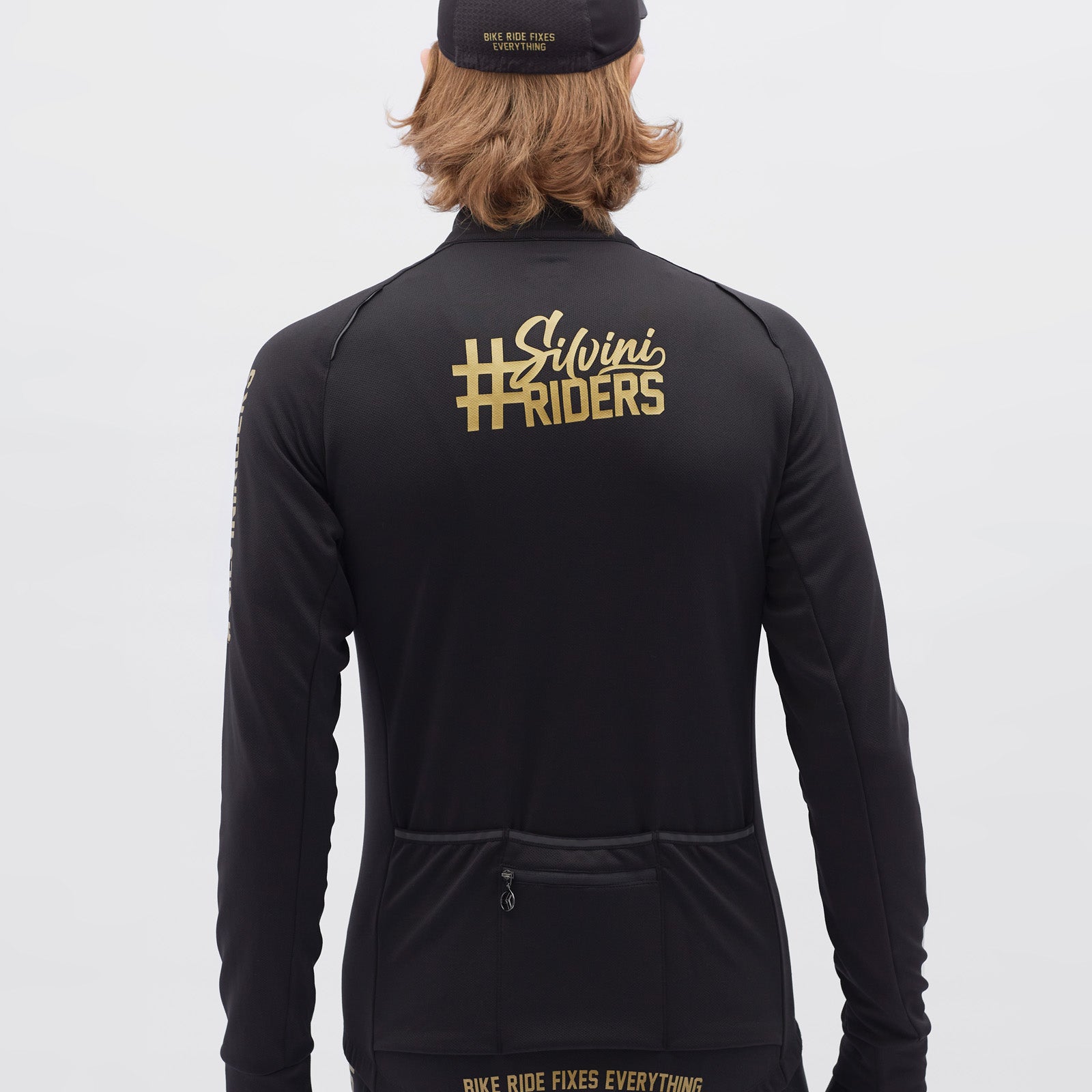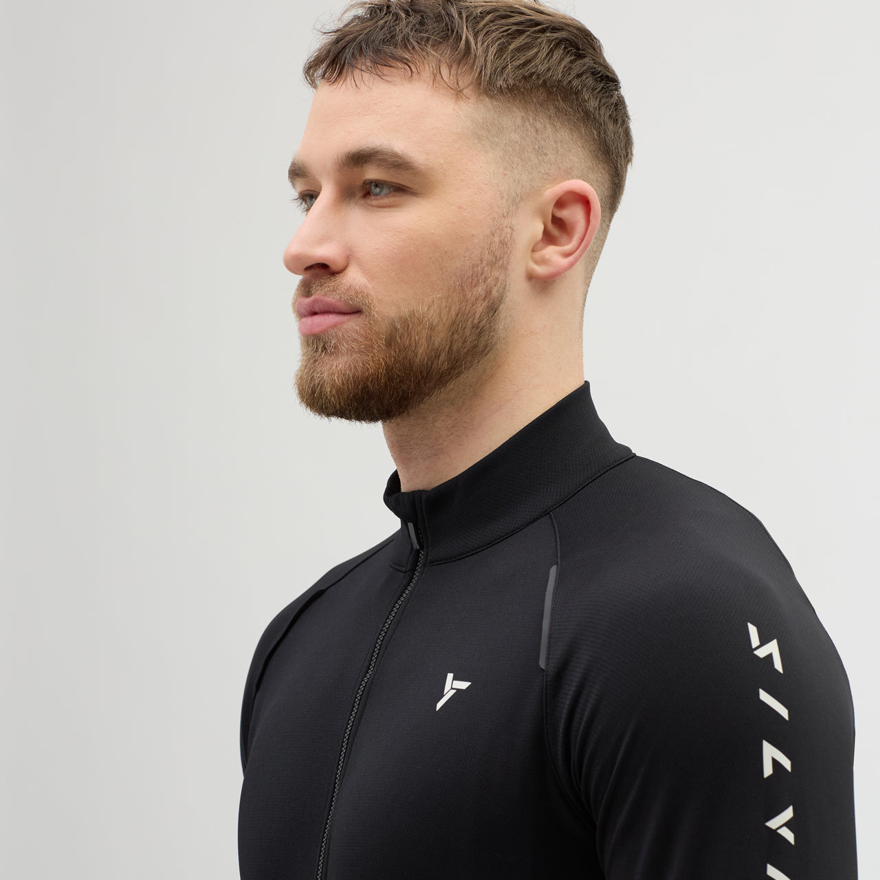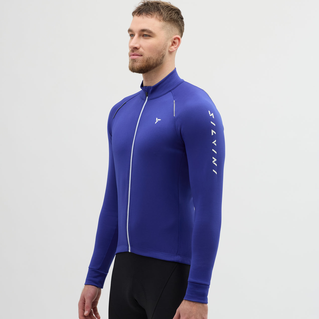 Men's insulated long-sleeved cycling jersey, made of densely woven POWERtherm material, is windproof. The raised collar effectively protects the neck. There is also a practical three-pocket at the back.