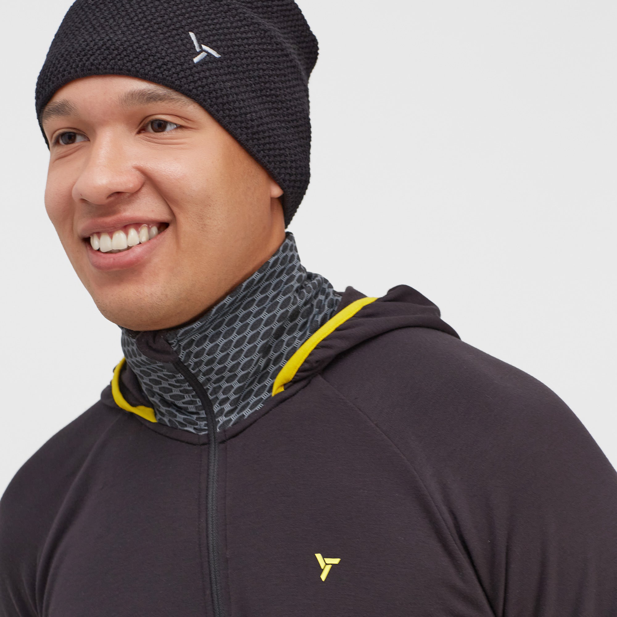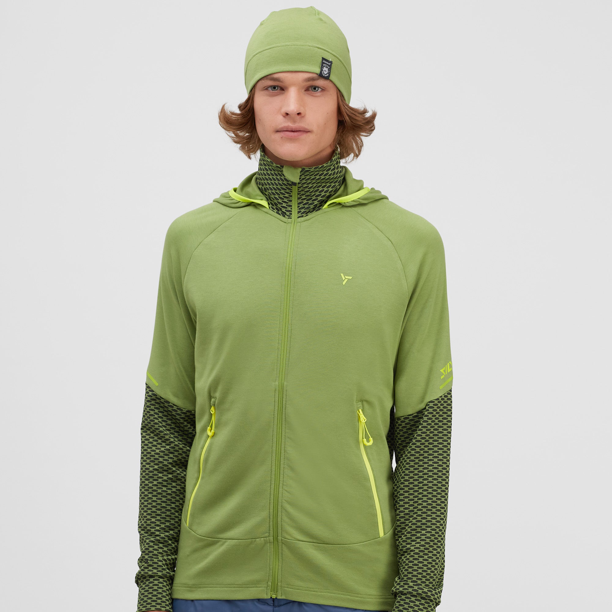 Men's breathable stretch hoodie with two zipped pockets. It combines comfortable Powertherm with modal, which wicks away sweat. Suitable as a mid-layer for ski mountaineers.