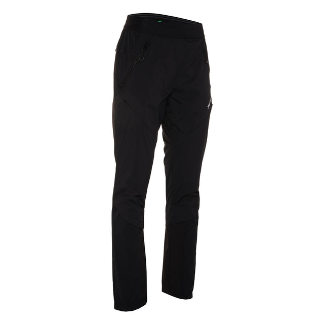 Women's insulated ski touring pants, lightweight, breathable, windproof, with pockets, leg zips, and reflective details for comfort and safety.